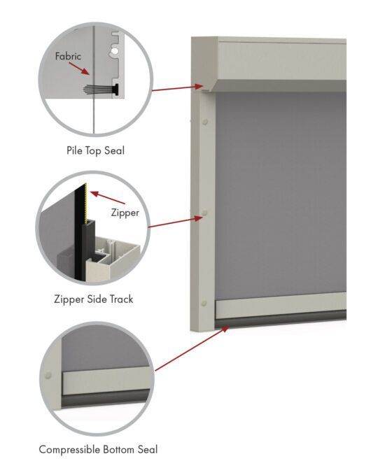 - Oasis 2900: Zipper-captured fabric system keeps fabric in side tracks, keeping fabric taut and insects out.