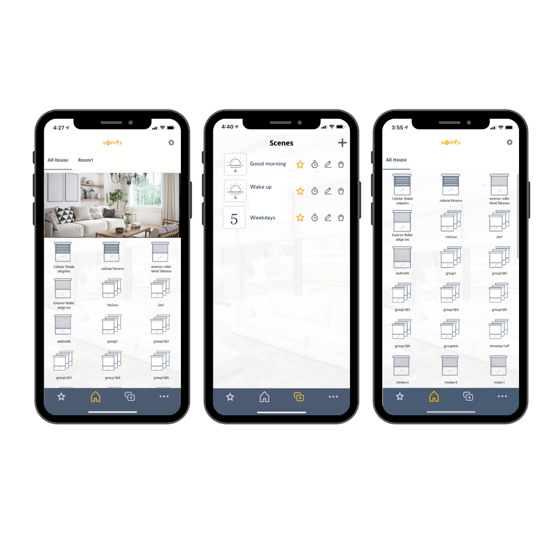 - Shades are powered by Somfy Motors & Lutron.