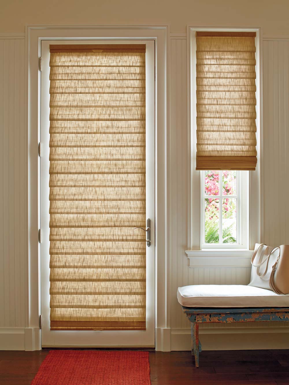 - Optional two-on-one headrail design. Two independent shades.